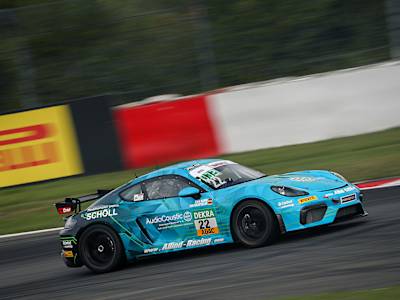 Lars Kern liegt auch in Session zwei an der Spitze: Im Porsche 718 Cayman GT4 markiert Lars Kern auch im zweiten freien Training die Bestzeit