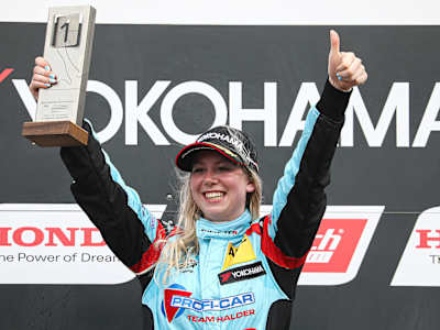 Michelle Halder jubelt über ihren ersten Sieg: Die Honda-Pilotin feiert einen souveränen Start-Ziel-Sieg