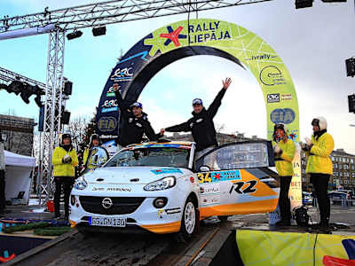 ADAC Opel Rallye Junior Team gewinnt EM-Auftakt: Emil Bergkvist gewinnt im Opel ADAM R2 die Rallye Liepaja