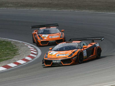 Starker Gegenwind für rhino's Leipert : Guter Rennspeed der orangen Lamborghini