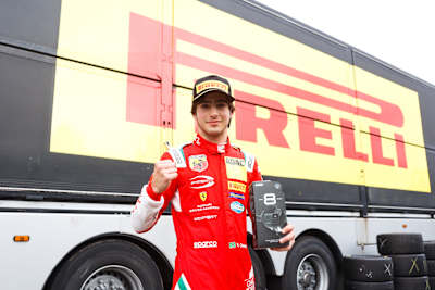 Freude bei Rafael Camara über den ersten Pirelli Pole Position Award