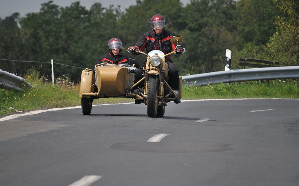 So hat jedes Motorrad seine eigene, ganz besondere Geschichte. So auch das BMW R 75-Gespann aus dem Jahr 1942, von Dr. Henning Lüpertz und Ehefrau Karin aus Darmstadt. "Ich habe das Gespann 1963 als Student für Maschinenbau an der TU Darmstadt bei einem Schrotthändler unter einer Schrotthalde entdeckt und buchstäblich ausgegraben", erinnert sich Lüpertz. Die technische Komplexität des Seitenwagenantriebs "trotz des grauenvollen und unvollständige Zustands" reizte den Studenten. Jetzt präsentiert sich das R 75-Gespann den Zuschauern wunderbar restauriert.