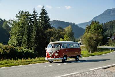 Gänzlich CO2-neutral ist auf der Tour durch das Salzkammergut ein Volkswagen T1 Transporter Baujahr 1964 des ADAC unterwegs. Der Ur-Bulli in der Lackierung der ADAC Straßenwacht ist Teil eines Pilotprojektes des ADAC zur praxisnahen Erprobung von E-Fuels in Oldtimern. Der Mobilitätsclub zeigt damit auf, wie man Oldtimer CO2-neutral betreiben kann. Gäste an Bord des Bullis bei den Tagestouren sind Bewohner des Samariterbund und Lebenshilfe Wohnhauses in Bad Ischl.
