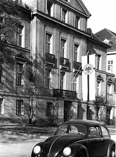 Kurze Zeit später, Anfang Dezember, kann das voll ausgerüstete Gespann anlässlich der in München stattfindenden Arbeitstagung dem geschäftsführenden Präsidium des ADAC im Hof der ADAC Hauptverwaltung, Königinstraße 9-11 in München, vorgeführt werden. Da dieses Ereignis vom damaligen Haus- und Hoffotografen des ADAC, Alois Woda, für einen Artikel in der ADAC Motorwelt im Bild festgehalten wurde, können wir heute auf hochwertige Fotos des noch jungfräulichen Gespannes zurückgreifen.