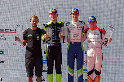 Die erste Startreihe bildeten mit Pole-Setter Loek Hartog (Niederlande/Black Falcon) und Buus zwei Fahrer aus dem Talent Pool, dem Nachwuchsprogramm des deutschen Markenpokals. Hartog behauptete sich beim Start, konnte die Führung in einem turbulenten Rennen mit zwei Safety-Car-Phasen allerdings nur bis kurz vor Schluss verteidigen. Wenige Minuten nachdem das Sicherheitsfahrzeug, ein vollelektrischer Porsche Taycan Turbo S, zum zweiten Mal in die Boxengasse abbog, rückte die Spitze eng zusammen. Drei Runden vor dem Ziel nutze Buus einen Verbremser seines Vordermannes, um mit dem entscheidenden Manöver vorbeizuziehen. Damit kürte sich Buus (18 Jahre und 363 Tage) nach dem heutigen Porsche-Werksfahrer Thomas Preining (18 Jahre und 359 Tage) zum zweitjüngsten Rennsieger in der Geschichte des Porsche Carrera Cup Deutschland. Seinen Pokal erhielt der Youngster von Thomas Laudenbach, Leiter Porsche Motorsport.