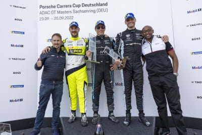 Laurin Heinrich (Deutschland/SSR Huber Racing) sammelte im 13. Lauf des Porsche Carrera Cup Deutschland am Samstag auf dem Sachsenring seinen fünften Saisonsieg ein. Der Porsche-Junior wurde vor Bastian Buus (Dänemark/Allied-Racing) und Morris Schuring (Niederlande/SSR Huber Racing) gewertet. Drei Läufe vor Saisonende liegt Heinrich in der Meisterschaftswertung mit 243 Punkten vor Larry ten Voorde (Niederlande/Team GP Elite), der 203 Zähler auf dem Konto hat. Dylan Pereira (Luxemburg/IronForce Racing by Phoenix) belegt mit 191 Punkten Platz drei.
