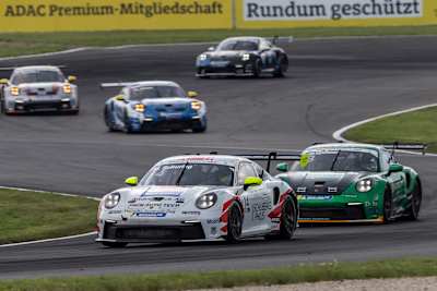 Anschließend fuhr der Porsche-Junior ungefährdet seinem ersten Saisonsieg entgegen. Während Hartog aufgeben musste, lieferten sich King und ten Voorde für den Rest des Rennens ein mit allen Tricks geführtes Duell. „Larry hat enormen Druck auf mich ausgeübt. Aber im Vergleich zu gestern, als die orangenen Autos einen Doppelsieg feiern konnten, haben wir uns gesteigert“, kommentierte King mit Verweis auf das Samstagsrennen, dass Loek Hartog vor Larry ten Voorde gewonnen hatte. Der Tabellenführer war aber auch mit dem dritten Rang zufrieden: „Mit Blick auf die Situation in der Gesamtwertung bin ich kein allzu hohes Risiko eingegangen“, räumte ten Voorde ein. Sein Vorsprung vor dem neuen Tabellenzweiten Harry King beträgt jetzt 54 Punkte. Porsche-Junior Bastian Buus als Gesamtvierter verkürzte den Rückstand auf die vor ihm platzierten Hartog und King. „Genau das war mein Ziel für dieses Wochenende. Auf dem Sachsenring geht es hoffentlich so weiter“, blickte der Däne den anstehenden Rennen entgegen.