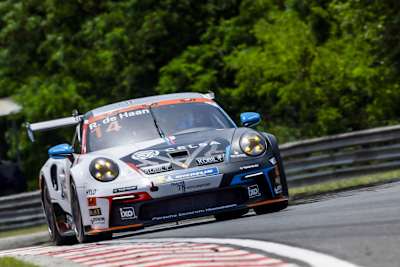 Als Dritter kletterte Robert de Haan aufs Podium. An seinem 18. Geburtstag konnte er sich außerdem über den Sieg in der Rookie-Wertung freuen. „Ich wollte bei den hohen Temperaturen die Reifen schonen. Das ist mir gelungen – und die Punkte für den Rookie-Sieg sind ein tolles Geburtstagsgeschenk“, strahlte der Niederländer, der für das Team75 Bernhard antritt. Er war außerdem schnellster Fahrer aus dem Talent Pool, dem Nachwuchsförderungsprogramm von Porsche Deutschland.