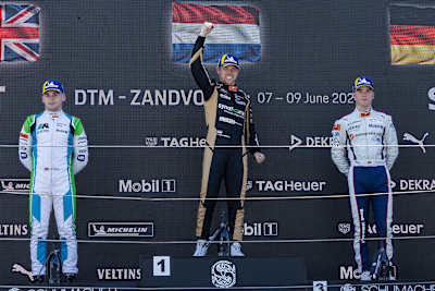 Zwei Ausrutscher verursachten kurz darauf zwei Full-Course-Yellow-Phasen, in der das gesamte Feld mit Tempo 80 km/h den Formel-1-Kurs in den Dünen an der Nordseeküste umkreiste. Als das Rennen wieder freigegeben wurde, blieben nur noch zwei Runden übrig. Während Larry ten Voorde an der Spitze ungefährdet seinem fünften Carrera-Cup-Sieg in Zandvoort entgegenfuhr, duellierten sich Theo Oeverhaus und Harry King um den zweiten Rang. „Ich habe mich nach dem Restart verbremst“, erklärte Oeverhaus, warum er in diesem Zweikampf unterlag. „Aber ich stehe zum ersten Mal auf dem Podium der Gesamtwertung, damit bin ich mehr als zufrieden“, fasste der Osnabrücker zusammen.