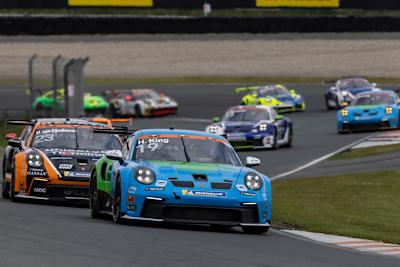 „Das Rennen verlief für mich wirklich abwechslungsreich“, grinste Harry King. Der Brite war von der sechsten Startposition losgefahren, konnte aber einen Konkurrenten nach dem anderen überholen. Dabei sorgte ein an sich harmloser Kontakt mit einem Konkurrenten dafür, dass sein Porsche auf der Start-Ziel-Geraden kurzzeitig nur auf den Hinterrädern unterwegs war. „Ich hatte sehr viel Glück, dass mein Auto danach immer noch einwandfrei lief. Mein Tempo war extrem gut, das macht mich zuversichtlich für morgen“, schaute King auf das zweite Rennen des Wochenendes am Sonntag (11:35 Uhr) voraus. Bis dahin beträgt sein Vorsprung vor Titelverteidiger Larry ten Voorde nur noch zwei Punkte.