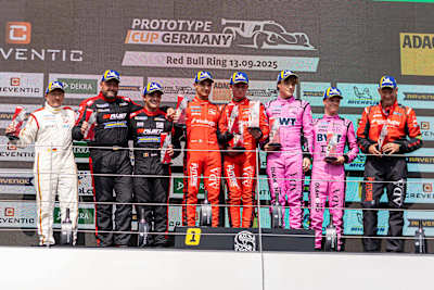Riccardo Leone Cirelli (17/ITA) und Mattias Bjerre Jakobsen (18/DEN, beide BWT Mücke Motorsport) heißen die Sieger des elften und vorletzten Saisonlaufs des Prototype Cup Germany 2025 auf dem Red Bull Ring. Die Mücke-Youngster eroberten Platz eins in der ersten Runde und gaben sie nie wieder ab. „Mein Start war nicht so gut, aber der danach folgende Kampf um die Führung mit Danny Soufi war toll“, so Cirelli, der von der Pole Position ins Rennen ging. Das Duell gegen den zusammen mit Pavel Lefterov (27/BUL) schon als Meister feststehenden Soufi (22/USA, beide Konrad Motorsport) entschied Cirelli schnell für sich und setzte sich immer weiter ab. „Ich habe zuerst Gas gegeben und dann versucht, die Reifen zu schonen. Mattias hat das Auto dann für den zweiten Stint übernommen und einen richtig guten Job gemacht.“ Auf seinen ersten Kilometern hatte der Gelobte allerdings noch Probleme. „Zu Beginn hatte ich zweimal blockierende Räder, aber später konnte ich pushen und das Rennen kontrollieren. Ich freue mich riesig über den Sieg, nachdem wir in dieser Saison auch schon Pech hatten.“ Sven Barth (44/Eberbach) / Maxim Dirickx (21/BEL, beide Aust Motorsport) und Maksymilian Angelard (18/POL) / Mattis Pluschkell (21/Elmenhorst, beide BWT Mücke Motorsport) belegten in der österreichischen Steiermark die Ränge zwei und drei.